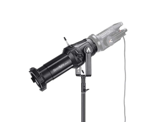 Aputure AP-SMS36 Spotlight Mount Set Der Spotlight Mount von Aputure ist der welterste seiner Art für den Bowens Mount und lässt Aputure neues Terrain betreten, was Lichtmodifikatoren angeht. Die internen Verschlusslamellen und drei unterschiedliche Linsenoptionen ermöglichen Ihnen größtmögliche Genauigkeit und Kontrolle bei der Lichtsetzung. Präzise Optiken Die drei Linsen des Spotlight Mounts wurden für Profis gemacht. Nicht nur verzehnfachen sie die Lichtausbeute des Light Storm C120d II, die hochauflösenden Linsen erzeugen einen äußerst gleichmäßigen Lichtstrahl mit minimalem Randlichtabfall und verändern die Farbtemperatur um weniger als 200° Kelvin. Geringe Farbsäume Die neue Linsentechnologie des Spotlight Mounts minimiert chromatische Aberrationen am Rand des Leuchtkreises. Verglichen mit ähnlichen ellipsoiden Halterungen, verringert der Spotlight Mount die Farbsäume am Rand auf gerade einmal 1mm bei einer Entfernung von fünf Metern. Kontrolle über die Lichtform Wie typische ellipsoide Leuchten bietet der Spotlight Mount den Nutzern das einfache Wechseln zwischen 19°-, 26°- und 36°-Linsen - je nachdem, ob Sie einen breiteren Leuchtkreis benötigen oder messerscharfe Genauigkeit. In Verbindung mit den internen Blenden erhalten Filmemacher die maximale Kontrolle über die Form Ihres Leuchtwinkels. Statten Sie Ihr Set mit Flair aus Durch die integrierten Blendenschirme (B-Größe), den Blendenschirmhalter und den Gel-Rahmen erlaubt der Spotlight Mount noch weitere Lichtgestaltungsmöglichkeiten, um ganz einfach jede Lichtform oder -farbe zu projizieren, die Sie sich nur vorstellen können. Zudem erlaubt die optionale auswechselbare Iris Filmemachern, die Lichtausbeute des Spotlight Mounts noch weiter zu optimieren, sowohl was Form als auch Größe betrifft. Dank des dualen Schlitzdesigns können Sie Blendenschirm und Iris gleichzeitig nutzen. Modulares Design Wie auch die übrigen hochwertigen Lichtmodifikatoren von Aputure, folgt der Spotlight Mount der Philosophie von Vielseitigkeit und Modularität und nutzt den Bowens Mount, was sowohl die Verwendung mit Light Storm C120d II als auch C300d erlaubt. Dualer Junior/Baby Mount Bei der Entwicklung des Spotlight Mounts wurde viel Wert auf vielseitige Befestigungsoptionen gelegt. Das Aputure Spotlight besitzt einen zweifachen Junior/Baby Mount und kann somit an einer Vielzahl an Stativen oder Beleuchtungsrastern befestigt werden. Robustes Metallgehäuse Der Spotlight Mount ist durch seine Gehäuse aus einer Aluminiumlegierung äußerst stabil und dabei ein leichter als vergleichbare ellipsoide Kunstlicht-Leuchten. Wohin auch immer Sie Ihre Produktion verschlägt - der Spotlight Mount ist Ihr treuer Begleiter. Features 36° Spotlight Mount ideal für große Setups geringere Lichtausbeute als die beiden anderen Optionen bei größerem Strahldurchmesser Strahldurchmesser von 180 cm bei 3 m Entfernung und damit zweimal so groß wie der 19°-Mount Lieferumfang Spotlight Mount mit 36°-Linse Transportkoffer 3x Blendenschirm (B-Size Gobo) mit Halterung Gelrahmen Reinigungskit