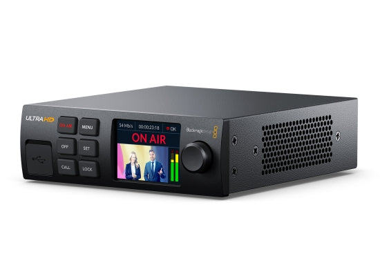 Blackmagic Design Web Presenter 4K Streamer Der Blackmagic Web Presenter 4K ist die ultimative Streaminglösung für HD und Ultra HD. Ausgestattet ist er mit einer professionellen Hardware-Streaming-Engine, um bis zu 2160p/60 direkt an YouTube, Facebook, Twitter und andere Plattformen zu streamen. Überdies hast du die Wahl, per Ethernet ins Internet zu streamen oder über ein angeschlossenes 5G- oder 4G-Handy mobile Daten zu nutzen. Da die eingebauten USB-Anschlüsse wie eine Webcam funktionieren, kannst du einen Computer anschließen und beliebige Videosoftwares verwenden. Es wird sogar ein Monitoring-Ausgang für Videobild, Audiopegelmeter, Trendgraphen und mehr geboten. Technische Daten Anschlüsse SDI-Videoeingänge: 1 SDI-Videoausgänge: 1 Durchschleifausgang, 1 Monitoring-Ausgang SDI-Raten: 1,5 G; 3 G; 6 G; 12 G HDMI-Videoausgänge: 1 Monitoring-Ausgang Webcam-Ausgabe: 1 USB Typ C bis 2160p/60 Ethernet: Ethernet unterstützt 10/100/1000BaseT für Livestreaming, Softwaresteuerung und Softwareupdates Normen HD-Videoeingabenormen: 720p/50; 720p/59,94; 720p/60; 1080p/23,98; 1080p/24; 1080p/25; 1080p/29,97; 1080p/30; 1080p/50; 1080p/59,94; 1080p/60; 1080PsF/23,98; 1080PsF/24; 1080PsF/25; 1080PsF/29,97; 1080PsF/30; 1080i/50; 1080i/59,94; 1080i/60 Ultra-HD-Normen für Videoeingaben: 2160p/23,98; 2160p/24; 2160p/25; 2160p/29,97; 2160p/30; 2160p/50; 2160p/59,94; 2160p/60 Farbraum für Videoeingaben: REC. 601, Rec. 709, Rec. 2020 3G SDI: Automatische Erkennung von SMPTE Level A oder B am SDI-Eingang Videonormen für SDI- und HDMI-Monitoring‑Ausgaben: 1080p/50; 1080p/59,94; 1080p/60 Videonormen für Streaming: 720p/25; 720p/30; 720p/50; 720p/60; 1080p/23,98; 1080p/24; 1080p/25; 1080p/29,97; 1080p/30; 1080p/50; 1080p/59,94; 1080p/60; 2160p/23,98; 2160p/24; 2160p/25; 2160p/29,97; 2160p/30; 2160p/50; 2160p/59,94; 2160p/60 Streaming Direktstreaming: Der Web Presenter 4K unterstützt direktes Livestreaming via Ethernet mittels Real Time Messaging Protocol (RTMP) Closed Captions: Der Web Presenter 4K unterstützt das Einbetten von geschlossenen Untertiteln in Ihren RTMP-Livestream in den Standards CEA-608 und CEA-708 Steuerung Bedienpult bzw. -panel: Frontblende mit 2,2-Zoll-Farbdisplay für Videovorschau, Audiopegelmeter und Statusanzeige Gerätesteuerung: vorderer USB-C-Port oder Ethernet Kompatible Dienste und Softwares: YouTube Live, Facebook Live, Twitter, Twitch, Skype, Open Broadcaster und Wowza Streaming Engine Betriebssysteme Mac Catalina 10.15, Mac Big Sur 11.1 oder höher Windows 10, 64 Bit Linux Chrome OS Strombedarf Stromversorgung: 1 integriertes AC-Netzteil für 100–240 V 12 V DC-Buchse: 1x +12V DC 4-poliger XLR-Anschluss Stromverbrauch: 25 W Umgebung Betriebstemperatur: 0 - 40°C Lagerungstemperatur: -20 - 45°C relative Luftfeuchtigkeit: 0 - 90% nicht kondensierend Physische Spezifikationen Maße (BxTxH): 140x175,5x44mm Gewicht: 0,755kg