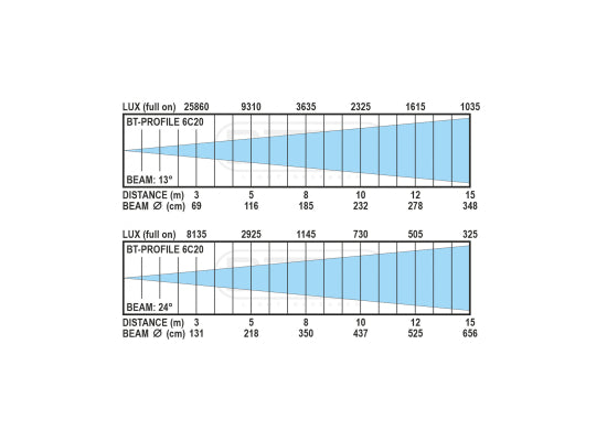 Briteq BT-Profile 6C20 Engine Basisgehäuse Vollfarbiges + weißes 280W LED-Modul für Theater „Profilspot“ (2kW Halogen Alternative). Kompatibel mit „ETC Quelle vier“ Optiken. Features Dieser 280W LED-Profil-Scheinwerfer verfügt über leistungsstarke Mehrfarben-LED-Technologie Es ist ein perfekter Ersatz für energieverbrauchende 2kW Halogenlampen in Theatern! Das 6-Farben RGBALC LED-Cluster (rot, grün, blau, bernsteinfarben, limette, cyan) garantiert: Perfekte Weißvoreinstellungen zwischen 1800K und 10000K mit hohem CRI >90Ra Reiche Farbauswahl mit den exakt gleichen Farbvoreinstellungen wie im BT-THEATRE HD2 und BT-PROFILE HD Sehr realistische Bernstein-Drift (Dim-to-Warm) Nachbildung von traditionellen Halogenlampen Farbkalibrierungssystem macht Farbunterschiede zwischen verschiedenen Chargen zu einem Ding der Vergangenheit Sehr leiser Betrieb mit geräuscharmem Kühlventilator und verschiedenen Lüftervoreinstellungen (live, studio, power) Kann im Standalone-Modus verwendet werden, ohne jegliche DMX-Steuerung DMX-gesteuert: 8 verschiedene Kanalmodi für maximale Flexibilität RDM-Funktionalität für einfache Ferninstallation Flimmerfreies TV-Shooting dank einstellbarer hoher Geschwindigkeit LED-Aktualisierungsrate Schnelle und langsame Dimmreaktion OLED-Display für einfache Navigation durch das Setup-Menü Sperren-Funktion, um unerwünschte Änderungen der Einstellungen zu verhindern 5-Pin DXM Ein-/Ausgänge + PowerCON TRUE1 kompatible Ein-/Ausgänge für einfaches Daisy-Chaining. Technische Daten Stromversorgung: AC 100 - 240V, 50/60Hz Energieeffizienzklasse: Nein Leistungsaufnahme: 290W Farbe: Schwarz Anzeige: OLED Befestigung: optionaler Standard-Klemme IP-Bewertung: Innenbereich Kontrolle Modi: manuell, DMX Protokoll: DMX, RDM Programmierbar: Nein Software aktualisierbar: Nein Minimale DMX-Kanäle: 4 Maximale DMX-Kanäle: 21 Licht Lampenfassung: Nein Lux: 9310 @5m (Strahl 13°) / 4320 @5m (Strahl 22°) Lampe: LED Min. Farbtemperatur (K): 1800 Max. Farbtemperatur (K): 10000 CRI: 90 Farben: Rot, Grün, Blau, Bernstein, Limette, Cyan, RGBALC Farbmischung: Ja Funktionen: manueller Fokus, manueller Zoom, optionale Iris, 4-Klingen-Framing-Shutter Max. Bildwiederholrate (kHz): 25 Verbindungen Eingang: 5-poliger XLR, PowerCon® TRUE1 oder kompatibel Ausgang: 5-poliger XLR, PowerCon® TRUE1 oder kompatibel Allgemein Maße (BxTxH): 3010x5780x2260mm Gewicht: 6.54kg