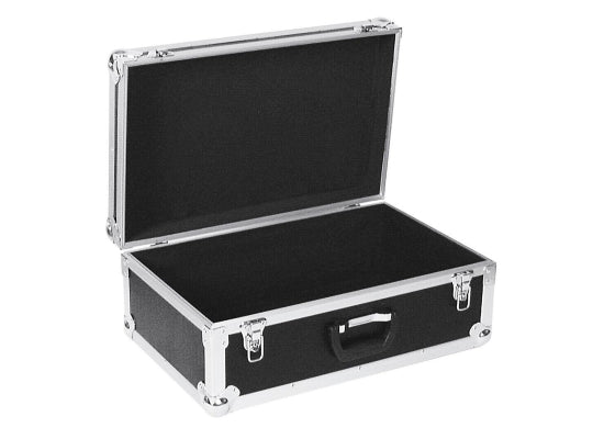 Case Universal, Kofferausführung Features Hochwertige Verarbeitung mit 7 mm Wandstärke Mehrfach verleimtes Holz für höchste Stabilität Außenfarbe:schwarz Innenfarbe:schwarz Mit dreischenkligen, mittelgroßen Stahlkugelecken Aluwinkelprofil 25 mm Mit 2 hochwertigen Schnappschlössern Robuster Techno-Griff Technische Daten Maximalbelastung: 13kg Wandstärke: 7mm Innenmaße (BxTxH): 565x350x220mm Außenmaße (BxTxH): 600x390x265mm Gewicht: 6kg