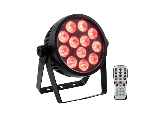 Eurolite LED 4C-12 Spot Lautloser 4in1-Scheinwerfer mit RGBW-Farbmischung. Features Geräuschloser Betrieb Reine Konvektionskühlung über Kühlrippen, keine Lüfter Auto-, Musik-, Master/Slave- und DMX-Modus Integrierte Showprogramme im Auto- und Musikmodus Direkte Farbwahl für 19 Farben RGBW-Farbmischung, Dimmer und Strobe-Einstellungen 3, 4, 5, 6 oder 9 DMX-Kanäle wählbar Kompatibel zu QuickDMX - das Funk-DMX-System von Eurolite Phantomgespeiste USB-Buchse für QuickDMX-Empfänger (Zubehör) Musiksteuerung über eingebautes Mikrofon mit einstellbarer Mikrofonempfindlichkeit Adressierung und Einstellungen über Steuereinheit mit 4-stelliger LED-Anzeige Bequeme Fernsteuerung per mitgelieferter IR-Fernbedienung EUROLITE IR-7 Flache Gehäuseform für minimalen Platzbedarf bei der Montage Schwenkbarer Montagebügel Zusätzlicher Bügel zum Aufstellen am Boden P-Con-Netzanschlüsse zur einfachen Reihenschaltung von bis zu 8 Geräten Technissche Daten Spannungsversorgung: 100-240 V AC, 50/60 Hz Gesamtanschlusswert: 55 W Schutzart: IP20 Stromanschluss: Stromeinspeisung Powercon (blau), Einbauversion Stromanschlusskabel mit Schutzkontakt (mitgeliefert) Stromausgang: P-Con (grau), Einbauversion LED: 12 x high-power 8 W 4in1 QCL RGBW (homogene Farbmischung) Abstrahlwinkel: 16° Blitzrate: 1 - 20 Hz DMX-Kanäle: 3; 4; 5; 6; 9 DMX-Eingang:1 x 3-pol XLR (M) Einbauversion DMX-Ausgang: 1 x 3-pol XLR (W) Einbauversion Lüfter:Ohne, da konvektionsgekühlt Ansteuerung: DMX, IR-Fernbedienung, Stand-alone Maße (BxTxH): 285x105x295mm Gewicht: 3,5kg