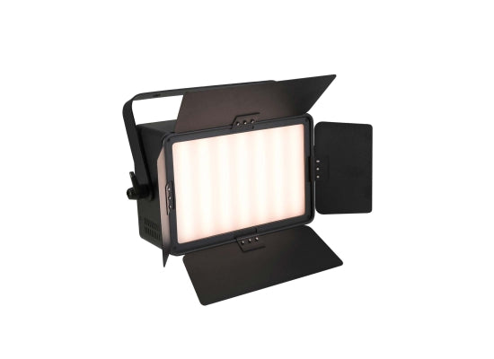 Eurolite LED Akku PLL-168 CW/WW Tageslichtscheinwerfer Akku-Flächenleuchte mit 168 dualweißen LEDs, QuickDMX-Buchse und Flügelbegrenzer Features Hochwertige Flächenleuchte mit 168 superhellen, weißen LEDs Kabellos, flexibel und vielseitig einsetzbar Ideal für Fotografie, Film, Bühne und Messebeleuchtung Variable Farbtemperatur 2800-6500 K 38 voreingestellte Farbtemperaturwerte Elektronischer Dimmer (0-100%) Schnelles Einstellen von Farbtemperatur und Leuchtstärke per Drehregler Strobe-Effekt 0-20 Hz Variable PWM-Frequenz (Pulsweitenmodulation) Auto-, Sound-, Master/Slave- und DMX-Modus Integrierte Showprogramme im Auto- und Soundmodus Bedienfeld mit LED-Anzeige zur einfachen Konfiguration Betrieb über Netzanschluss oder eingebautem Lithium-Ionen-Akku mit bis zu 8 Stunden Betriebszeit (je nach Einstellung) Energiesparmodus Kompatibel zu QuickDMX - das Funk-DMX-System von Eurolite Phantomgespeiste USB-Buchse für QuickDMX-, CRMX- und WDMX-Empfänger (Zubehör) Perfekter Blend- und Transportschutz durch vier Torblenden Flaches, robustes Metallgehäuse Schwenkbarer Montagebügel Netzeingang und Netzausgang zum einfachen Zusammenschalten von bis zu 8 Geräten LED: 84 x SMD 2835 0,5 W Kaltweiß (CW) LED: 84 x SMD 2835 0,5 W Warmweiß (WW) Im 2; 4; 6 CH DMX-Modus bedienbar Die Gerätekühlung erfolgt über passive Konvektionskühlung Ansteuerbar über Stand-alone; Musiksteuerung über Mikrofon; Master/Slave Funktion; DMX; Schnellwahlpotentiometer für Helligkeit und Farbtemperatur; QuickDMX über USB (optional); W-DMX by Wireless Solution über USB (optional); CRMX by LumenRadio über USB (optional) Flimmerfreie Projektion Sehr hoher Farbwiedergabeindex (CRI) Technische Daten Spannungsversorgung: 100-240 V AC, 50/60 Hz Schutzart: IP20 Schutzklasse: SK I Stromanschluss: Stromeinspeisung über P-Con (blau), Einbauversion Stromanschlusskabel mit Schutzkontaktstecker (mitgeliefert) Stromausgang: P-Con (grau), Einbauversion Sicherung: 5 x 20 mm, T 1 A Sicherung auswechselbar Akkutyp: 1 x Lithium-Ion 22,2 V, 4400 mAh, 97,68 Wh Akku: Betriebsdauer bis zu 8h je nach verwendetem Programm Ladedauer 4h Lampenart: LED-Lampe LED: 84 x SMD 2835 0,5 W Kaltweiß (CW) 84 x SMD 2835 0,5 W Warmweiß (WW) Farbtemperatur: 2800K - 6500K einstellbar Blitzrate: 0 - 20 Hz DMX-Kanäle: 2; 4; 6 DMX-Eingang: 3-pol XLR (M) Einbauversion DMX-Ausgang: 3-pol XLR (W) Einbauversion Kühlung: Passive Konvektionskühlung Ansteuerung: Stand-alone; Musiksteuerung über Mikrofon; Master/Slave Funktion; DMX; Schnellwahlpotentiometer für Helligkeit und Farbtemperatur; QuickDMX über USB (optional); W-DMX by Wireless Solution über USB (optional); CRMX by LumenRadio über USB (optional) Abstrahlwinkel: 120° Abstrahlwinkel (1/2 Peak): 120° Farbwiedergabeindex (CRI) größer als: 90 Ra Gehäusefarbe: Schwarz Displaytyp: 4 stelliges 7-Segment-LED Display Maße(BxTxH): 357x117x220mm Gewicht: 3,50kg