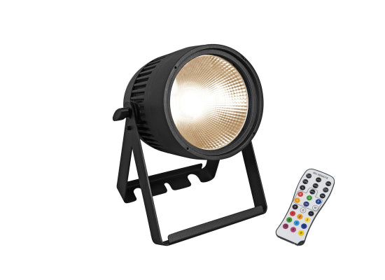 Eurolite LED IP Tourlight 200 WW Lautloser IP65-Scheinwerfer mit warmweißer 200-W-LED, QuickDMX, CRI >90 Features Integrierter QuickDMX-Transceiver für kabellose DMX-Steuerung 1 leistungsstarke LED 200 W COB (Chip-on-board) Warmweiß (WW) 4 integrierte Showprogramme Im 1; 2; 4 CH DMX-Modus bedienbar Die Gerätekühlung erfolgt über passive Konvektionskühlung Ansteuerbar über Stand-alone; DMX; QuickDMX; IR-Fernbedienung; Master/Slave Funktion Flimmerfrei Mit einem Abstrahlwinkel von 30° Sehr hoher Farbwiedergabeindex (CRI) Mit Omega-Bügel; mit Bügel zum Aufstellen am Boden LCD Display Für den Außenbereich geeignet IP65 Für Anwendungsgebiete wie zum Beispiel: Bühne Dimmer elektronisch Bereits vorprogrammiert bei Light Captain Netzeingang und Netzausgang zum einfachen Zusammenschalten von bis zu 8 Geräten Technische Daten Stromversorgung: 100-240 V AC, 50/60 Hz Gesamtanschlusswert: 110 W Schutzart: IP65 Schutzklasse: SK I Stromanschluss: Stromeinspeisung über IP T-Con (M) Stromanschlusskabel mit Schutzkontaktstecker (mitgeliefert) Stromausgang: IP T-Con (W) Einbauversion Lampenart: LED-Lampe LED: 1 x 200 W COB (Chip-on-board) Warmweiß (WW) Farbtemperatur: 3000K DMX-Kanäle: 1; 2; 4 DMX-Eingang: 3-pol XLR (M) Einbauversion IP DMX-Ausgang: 3-pol XLR (W) Einbauversion IP Kühlung: Passive Konvektionskühlung Ansteuerung: Stand-alone; DMX; QuickDMX; IR-Fernbedienung; Master/Slave Funktion Vorprogrammiert bei: Light Captain Abstrahlwinkel: 30° Abstrahlwinkel (1/2 Peak): 30° Abstrahlwinkel (1/10 Peak): 60° Farbwiedergabeindex (CRI): 93 Ra Gehäusefarbe: Schwarz Aufnahmesystem: Omega-Bügel Bügel zum Aufstellen am Boden Displaytyp: LCD Display Durchmesser: Ø 18,2 cm Batterie: 1 x Knopfzelle 3,0 V CR2025 Lithium-Mangan eingebaut Spezialprodukt: Nicht zur Raumbeleuchtung in Haushalten vorgesehen Verwendungszweck: Beleuchtung für Show-Effekte Maße(BxTxH): 251x272x327mm Gewicht: 4,5kg Lieferumfang 1 x Scheinwerfer 1 x Bedienungsanleitung 1 x Netzkabel/Stromkabel 1 x Omega-Bügel 1 x Fernbedienung 1 x Batterie