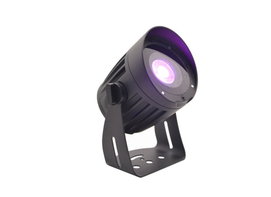 Eurolite LED Outdoor Spot, schwarz, 15W RGBW Wetterfester LED-Spot (IP65) mit 15-W-LED, inkl. IR-Fernbedienung, Frostfilter & Erdspieß Features Eine leistungsstarke 15-W-LED (4in1) mit RGBW-Farben Kompakt und lichtstark Wetterfestes Aluminium-Druckguss-Gehäuse (IP65) Zusätzlicher Frostfilter für ein homogenes und weiches Licht 8° Abstrahlwinkel; Frostfilter (22°) im Lieferumfang enthalten Bequeme Fernsteuerung per mitgelieferter IR-Fernbedienung EUROLITE IR-38 Direkte Farbwahl für 15 Farben 3 Tasten auf der Fernbedienung zum Speichern eigener Farbmischungen Stufenlose RGBW-Farbmischung, Dimmer, Strobe-Effekt, integrierte Showprogramme mit variabler Geschwindigkeit (Farbwechsel, Farbüberblendung) Einfache Montage per Erdspieß für Garten, Terrasse und Balkon Schwenkbarer Montagebügel Druckausgleichsstopfen Schaltnetzteiltechnologie für Netzspannung zwischen 100 und 240 Volt Netzanschluss über Netzkabel mit Schutzkontaktstecker LED: 1 x 15 W 4in1 QCL RGBW (homogene Farbmischung) Die Gerätekühlung erfolgt über passive Konvektionskühlung Ansteuerbar über IR-Fernbedienung (mitgeliefert) Flimmerfreie Projektion Für den Außenbereich geeignet Technische Daten Spannungsversorgung: 100-240 V AC, 50/60 Hz Gesamtanschlusswert: 15 W Schutzart: IP65 Schutzklasse: SK I Stromanschluss: Festes Stromanschlusskabel mit Schutzkontaktstecker Lampenart: LED-Lampe LED: 1 x 15 W 4in1 QCL RGBW (homogene Farbmischung) Kühlung: Passive Konvektionskühlung Ansteuerung: IR-Fernbedienung (mitgeliefert) Abstrahlwinkel: 8° Abstrahlwinkel (1/2 Peak): 8° Abstrahlwinkel (1/10 Peak): 14° Gehäusefarbe: Schwarz Geräuschklassifizierung: Klasse 0 (keinerlei Geräusche) Fernbedienung Batterie: 1 x Knopfzelle 3,0 V CR2032 Lithium-Mangan eingebaut Rechtliche Spezifikationen Spezialprodukt: Nicht zur Raumbeleuchtung in Haushalten vorgesehen Verwendungszweck: Beleuchtung für Show-Effekte Maße(BxLxT): 110x143x184 Gewicht: 1,50kg