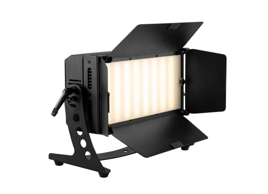Eurolite LED PLL-384 CW/WW Softlight DMX-steuerbare Flächenleuchte mit je 192 LEDs in kalt- und warmweiß, QuickDMX-Buchse, Diffusor und Flügelbegrenzer. Features Hochwertige Flächenleuchte mit 384 superhellen, weißen LEDs Farbtemperatur stufenlos zwischen 2700 K und 5700 K einstellbar CRI von >90 69 voreingestellte Farbtemperaturwerte Ideal für Fotografie, Film, Bühne und Messebeleuchtung Energiesparend, langlebig und umweltfreundlich Milchige Diffusorplatte für ein homogenes und weiches Dauerlicht Perfekter Blend- und Transportschutz durch vier Torblenden Stufenlos dimmbar Manuelle Bedienung oder DMX512-Ansteuerung Kompatibel zu QuickDMX - das Funk-DMX-System von Eurolite Phantomgespeiste USB-Buchse für QuickDMX-Empfänger (Zubehör) Adressierung und Einstellungen über Steuereinheit mit LCD Farbtemperatur und Helligkeit manuell über Encoder-Räder einstellbar Master-/Slave-Funktion Strobe-Effekt Flaches, robustes Metallgehäuse Schwenkbarer Montagebügel Zusätzliche Gummifüße schützen das Gerät beim Aufstellen auf dem Boden Stativ- oder Traversenmontage P-Con-Netzanschlüsse zum einfachen Zusammenschalten von bis zu 8 Geräten Schaltnetzteiltechnologie für Netzspannung zwischen 100 und 240 Volt LED: 192 x SMD 5730 0,5 W Kaltweiß (CW) LED: 192 x SMD 5730 0,5 W Warmweiß (WW) Im 2-1; 2-2; 3-1; 3-2; 4 CH DMX-Modus bedienbar Die Gerätekühlung erfolgt über temperaturgeregelten Lüfter Ansteuerbar über DMX; Master/Slave Funktion; Stand-alone; CRMX by LumenRadio über USB (optional); QuickDMX über USB (optional); W-DMX by Wireless Solution über USB (optional) Flimmerfreie Projektion Sehr hoher Farbwiedergabeindex (CRI) Technische Daten Spannungsversorgung: 100-240 V AC, 50/60 Hz Gesamtanschlusswert: 100 W Schutzart: IP20 Schutzklasse: SK I Stromanschluss: Stromeinspeisung P-Con (blau), Einbauversion Stromanschlusskabel mit Schutzkontaktstecker (mitgeliefert) Stromausgang: P-Con (grau), Einbauversion Lampenart: LED-Lampe LED: 192 x SMD 5730 0,5 W Kaltweiß (CW), 192 x SMD 5730 0,5 W Warmweiß (WW) Farbtemperatur: 2700K - 5700K einstellbar Blitzrate: 1 - 20 Hz DMX-Kanäle: 2-1; 2-2; 3-1; 3-2; 4 DMX-Eingang: 1 x 3-pol XLR (M) Einbauversion DMX-Ausgang: 1 x 3-pol XLR (W) Einbauversion Kühlung: Temperaturgeregelten Lüfter Ansteuerung: DMX; Master/Slave Funktion; Stand-alone; CRMX by LumenRadio über USB (optional); QuickDMX über USB (optional); W-DMX by Wireless Solution über USB (optional) Abstrahlwinkel: 120° Abstrahlwinkel (1/2 Peak): 120° Farbwiedergabeindex (CRI) größer als: 90 Ra Gehäusefarbe: Schwarz Displaytyp: LCD Display Maße (BxTxH): 347x138x211mm Gewicht: 3,50 kg