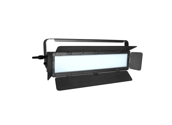Eurolite LED PLL-432 CW/WW Tageslichtscheinwerfer DMX-steuerbare Flächenleuchte mit 432 dualweißen LEDs, QuickDMX-Buchse und Flügelbegrenzer Features Ideal für Fotografie, Film, Bühne und Messebeleuchtung 432 superhelle, dualweiße LEDs Abstrahwinkel 120° Variable Farbtemperatur 2800-6500 K Schnelles Einstellen von Farbtemperatur und Leuchtstärke per Drehregler Perfekter Blend- und Transportschutz durch 4 Torblenden Energiesparend, langlebig und umweltfreundlich Auto-, Musik-, Master/Slave- und DMX-Modus Integrierte Showprogramme im Auto- und Musikmodus Variable PWM-Frequenz (Pulsweitenmodulation) Strobe-Effekt Bedienfeld mit LCD-Anzeige zur einfachen Konfiguration Kompatibel zu QuickDMX - das Funk-DMX-System von Eurolite Phantomgespeiste USB-Buchse für QuickDMX-, CRMX- und WDMX-Empfänger (Zubehör) Komfortabler Haltegriff Schwenkbarer Montagebügel Netzeingang und Netzausgang zum einfachen Zusammenschalten von bis zu 8 Geräten LED: 432 x SMD 2835 CW/WW Im 2; 4; 6 CH DMX-Modus bedienbar Die Gerätekühlung erfolgt über passive Konvektionskühlung Ansteuerbar über DMX; Schnellwahlpotentiometer für Helligkeit und Farbtemperatur; Stand-alone; Musiksteuerung über Mikrofon; Master/Slave Funktion; QuickDMX über USB (optional); W-DMX by Wireless Solution über USB (optional); CRMX by LumenRadio über USB (optional) Flimmerfreie Projektion Sehr hoher Farbwiedergabeindex (CRI) Technische Daten Spannungsversorgung: 100-240 V AC, 50/60 Hz Gesamtanschlusswert: 85 W Schutzart: IP20 Schutzklasse: SK I Sicherung: T 3 A Sicherung auswechselbar Lampenart: LED-Lampe LED: 432 x SMD 2835 CW/WW Farbtemperatur: 2800K - 6500K einstellbar DMX-Kanäle: 2; 4; 6 DMX-Eingang: 3-pol XLR (M) Einbauversion DMX-Ausgang: 3-pol XLR (W) Einbauversion Kühlung: Passive Konvektionskühlung Ansteuerung: DMX; Schnellwahlpotentiometer für Helligkeit und Farbtemperatur; Stand-alone; Musiksteuerung über Mikrofon; Master/Slave Funktion; QuickDMX über USB (optional); W-DMX by Wireless Solution über USB (optional); CRMX by LumenRadio über USB (optional) Abstrahlwinkel: 120° Abstrahlwinkel (1/2 Peak): 120° Farbwiedergabeindex (CRI) größer als: 90 Ra Beleuchtungsstärke in Lux (lx): Kaltweiß (CW) 1m: 919 lx, 3m: 124 lx, 6m: 38 lx Warmweiß (WW) 1m: 801 lx, 3m: 109 lx, 6m: 33 lx Alle 1m: 1681 lx, 3m: 228 lx, 6m: 69 lx Gehäusefarbe: Schwarz Displaytyp: LCD Display Maße(BxTxH): 603x179x208mm Gewicht: 3,45kg
