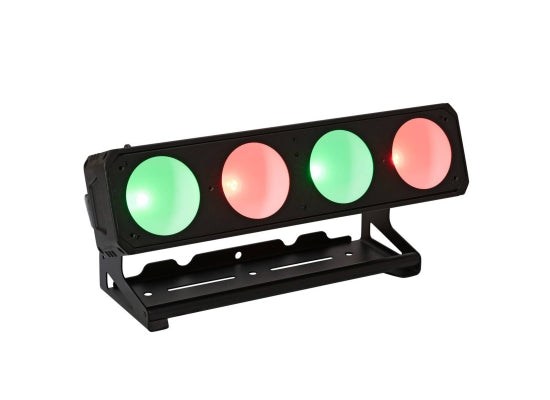 Eurolite LED PMB-4 LED Bar LED-Lichteffektleiste mit RGBW-Farbmischung, inkl. IR-Fernbedienung. Features 4 leistungsstarke 30-W-RGBW-LEDs (COB) Integrierte Showprogramme im Auto- und Musikmodus Direkte Farbwahl für 27 Farben Stufenlose RGBW-Farbmischung, Farbwechsel, Farbüberblendung, Dimmer und Strobe-Effekt Bequeme Fernsteuerung per mitgelieferter IR-Fernbedienung EUROLITE IR-7 Musiksteuerung über eingebautes Mikrofon mit einstellbarer Mikrofonempfindlichkeit Kompatibel zu QuickDMX - das Funk-DMX-System von Eurolite Phantomgespeiste USB-Buchse für QuickDMX-Empfänger Technische Daten Lampenart: LED-Lampe LED: 4 x COB (Chip-on-board) 30 W 4in1 QCL RGBW (homogene Farbmischung) Blitzrate: 0 - 20 Hz DMX-Kanäle: 3; 4; 5; 6; 8; 16; 20 DMX-Eingang: 3-pol XLR (M) Einbauversion DMX-Ausgang: 3-pol XLR (W) Einbauversion Ansteuerung: Stand-alone; IR-Fernbedienung (mitgeliefert); DMX; QuickDMX über USB (optional); Master/Slave Funktion; Musiksteuerung über Mikrofon Abstrahlwinkel (1/2 Peak): 45° Abstrahlwinkel (1/10 Peak): 74° Displaytyp: LCD Display Spannungsversorgung: 100-240 V AC, 50/60 Hz Gesamtanschlusswert: 110 W Schutzart: IP20 Schutzklasse: SK I Stromanschluss: Stromeinspeisung P-Con (blau), Einbauversion Stromanschlusskabel mit Schutzkontaktstecker (mitgeliefert) Stromausgang: P-Con (grau), Einbauversion Sicherung: T 2 A Sicherung auswechselbar Kühlung: Super leiser Lüfter Farbe: schwarz Maße (BxTxH): 490 x 160 x 200 mm Gewicht: 6,55 kg