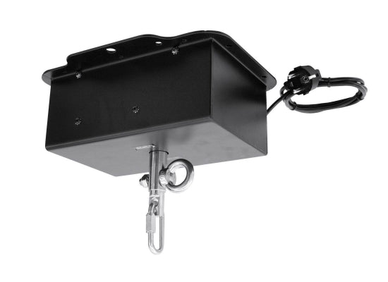 Eurolite MD-3050 Spiegelkugelmotor Sicherheits-Drehmotor für Kugeln bis 150cm Der Eurolite MD-3050 Spiegelkugelmotor ist für Spiegelkugeln bis zu einem max. Gesamtgewicht von 150kg geeignet. Dies entspricht bei Eurolite Spiegelkugeln einem Durchmesser von 150cm. Die max. Tragfähigkeit des Eurolite MD-3050 bezieht sich immer auf das tatsächliche Gewicht der Spiegelkugel inkl. Spiegelkugelkette, Sicherungskette und Befestigungsmaterial. Für den Betrieb des Eurolite MD-3050 werden zusätzlich zum Lieferumfang 2 Ketten und 4 Schnellverbinder benötigt. Der Eurolite MD-3050 Spiegelkugelmotor arbeitet mit einer Umdrehung pro Minute. Für den professionellen Einsatz, z. B. in Diskotheken und Versammlungsstätten, müssen unbedingt die Bestimmungen der BGV C1 (vormals VBG 70) eingehalten werden. Der Eurolite MD-3050 Spiegelkugelmotor muss immer mit einer zweiten, unabhängigen Aufhängung installiert werden. Vor der ersten Inbetriebnahme muss die Einrichtung durch einen Sachverständigen geprüft werden. Technische Daten Spannungsversorgung: 230V AC, 50Hz~ Gesamtanschlusswert: 7W Max. Last WLL (4-fach): 450kg Max. Last BGV C1 (8-fach): 225kg Max. Last BGV C1 (10-fach): 180kg Max. Last BGV C1 (12-fach): 150kg Max. Spiegelkugeldurchmesser: 150cm Rotationsgeschwindigkeit: ca. 1 U/Min. Maße (LxBxH): 280x240x110mm Gewicht: 5kg