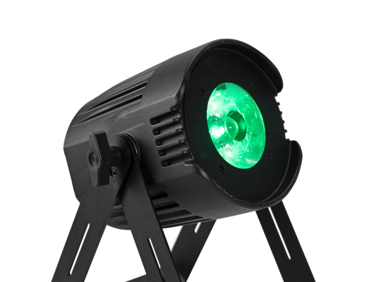 Eurolite PST-40 QCL DMX LED Pinspot Features Zwei zusätzliche Frostfilter für ein homogenes und weiches Licht 3 Tasten auf der Fernbedienung zum Speichern eigener Farbmischungen Stufenlose Farbmischung, Farbwechsel, Farbüberblendung, Dimmer und Strobe-Effekt Weißabgleich einstellbar Dimmergeschwindigkeit (Sprungantwort) einstellbar Netzeingang und Netzausgang zum einfachen Zusammenschalten von bis zu 8 Geräten 1 leistungsstarke LED 40 W 4in1 QCL RGBW (homogene Farbmischung) 36 integrierte Showprogramme Direkte Farbwahl für 15 Farben Im 3; 4; 6; 8; 11 CH DMX-Modus bedienbar Die Gerätekühlung erfolgt über passive Konvektionskühlung Ansteuerbar über IR-Fernbedienung; Stand-alone; QuickDMX (optional); W-DMX by Wireless Solution (optional); CRMX by LumenRadio (optional); DMX; Musiksteuerung über Mikrofon; Master/Slave Funktion Flimmerfrei Mit einem Abstrahlwinkel von 4° Mit Doppelbügel LCD Display Technische Daten Spannungsversorgung: 100-240 V AC, 50/60 Hz Gesamtanschlusswert: 36 W Schutzart: IP20 Schutzklasse: SK I Stromanschluss: Stromeinspeisung über P-Con (blau), Einbauversion Stromanschlusskabel mit Schutzkontaktstecker (mitgeliefert) Stromausgang: 1 x P-Con (grau), Einbauversion LED: 1 x 40 W 4in1 QCL RGBW (homogene Farbmischung) DMX-Kanäle: 3; 4; 6; 8; 11 DMX-Eingang: 1 x 3-pol XLR (M) Einbauversion DMX-Ausgang: 1 x 3-pol XLR (W) Einbauversion Kühlung: Passive Konvektionskühlung Ansteuerung: IR-Fernbedienung; Stand-alone; QuickDMX (optional); W-DMX by Wireless Solution (optional); CRMX by LumenRadio (optional); DMX; Musiksteuerung über Mikrofon; Master/Slave Funktion Abstrahlwinkel: 4° Abstrahlwinkel (1/2 Peak): 4° Frostfilter: 20° Frostfilter: 80° Abstrahlwinkel (1/10 Peak): 8° Gehäusefarbe: Schwarz Aufnahmesystem: Doppelbügel Displaytyp: LCD Display Maße (BxTxH): 170x120x225mm Gewicht: 1,98 kg
