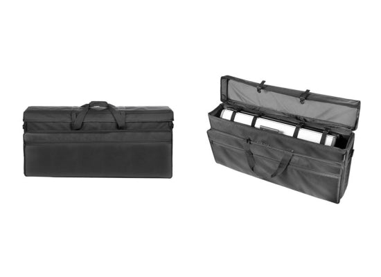 Fomex EXCB18 Tragetasche, schwarz Techische Daten Robustes Material Schaumstoff-Polsterung Separates Fach an der Außenseite mit Reißverschluss für Zubehör Gurt zum Umhängen Tragegriffe Passend für EX1800 LED Indoor Softlight Kit Maße (BxTxH): 1080x470x250mm Gewicht: 0,478 kg