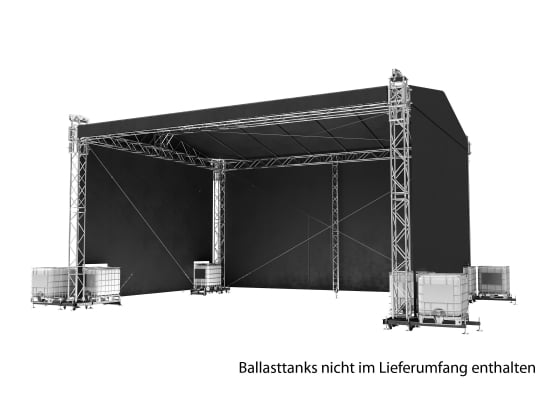 Global Truss Double Pitch Roof 10x8m Giebeldach Die Global Truss Bühnendächer überzeugen durch ihre Flexibilität und einfache Handhabung beim Aufbau der Konstruktion. Wenige Sonderteile, gleiche Teile bei verschiedenen Baugrößen und größtmögliche Belastung zeichnen die Überdachungen aus. Das Einsatzgebiet reicht von Firmenfeiern, Straßenfesten bis hin zu großen Open-Air Veranstaltungen. Bei dem Double Pitch Roof 10x8 / 8x6m handelt es sich um ein Giebeldach, welches als 10x8m Version, sowie um 90° gedreht, als 8x6m Version aufgebaut werden kann. Das Bühnendach basiert auf dem Multi-Tower-Basement und wird mit F44P Traversen realisiert. Die Aussteifung erfolgt über Drahtseile und speziellen Eckaussteifungen. Der Aufbau kann mit Elektrokettenzügen, sowie Handkettenzügen erfolgen. Die Sleeveblöcke können über spezielle Rahmen am Tower gesichert werden. Im Lieferumfang befinden sich eine schwarze Dachplane und schwarze Netze zur seitlichen Verkleidung, sowie ein Standsicherheitsnachweis. Nicht im Lieferumfang enthalten: Ballast und Hebezeuge. Features Giebeldach für Podestfläche 10x8m/8x6m Inkl. Standsicherheitsnachweis Technische Daten Traversensystem: F44P Maximale Dachlast: bis zu 2,4 t Maße (BxTxH): 11,5x9,5x6,8m