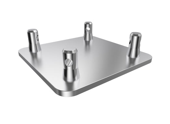 Global Truss F14 Bodenplatte Bodenplatte mit 4 Halbkonussen und Konusverbinder. Technische Daten Maße Grundplatte: 115mm x 115mm Rohrdurchmesser Hauptrohr: 20mm Wandstärke: 10mm Durchmesser Brace: 6mm Gewicht: 1,0kg