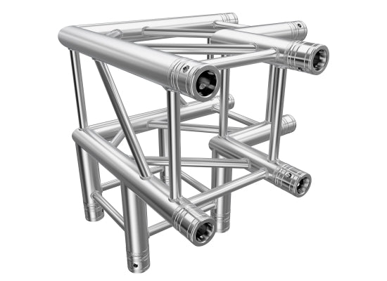 Global Truss F34 C30 Winkel 90° Die F34 Traverse bietet ein Optimum an Tragfähigkeit und zeichnet sich durch ein geringes Transportvolumen und durch ihre Leichtbauweise aus. Die Einsatzbereiche der F34 Traverse sind hauptsächlich Veranstaltungstechnik, Messe- und Ladenbau. Technische Daten Lieferung inkl. einem Verbindersatz! Legierung: AlMgSi F31 Gurtrohr: 50 x 2 mm Zugstäbe: 20 x 2 mm Verbinder: Konus Kantenlänge: 290 mm Schenkellänge: 500 mm Packmaß: 500x500x500mm