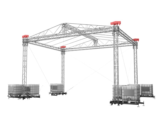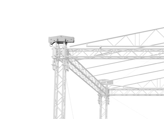 Global Truss F34 Tower Top Überlenk Rollenträger Mit Hilfe des Tower Topteils können Ground Support Konstruktionen mit Sleeveblöcken realisiert werden. Die Sleeveblöcke können mit Hilfe von Elektro-Kettenzügen über die Umlenkrollen bewegt werden. Der F34 Tower Top Überlenk Rollenträger ist speziell für das Global Truss Double Pitch Roof 8x6m konzipiert worden. Für die Bühnendachkonstruktion werden insgesamt vier Tower Top Rollenträger benötigt. Technische Daten Farbe: silber Gewicht: ca. 19,6kg