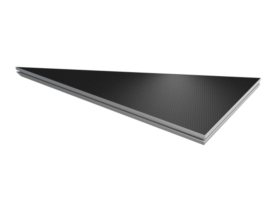 Global Truss GT Stage Deck Bühnenpodest Triangel, 200x100cm, rechts Das GT Stage Deck Outdoor Podest ist ein mobiles Bühnensystem für alle Anwendungen im Außen- oder selbstverständlich auch im Innenbereich. Die Einsatzgebiete sind vielfältig: Konzerte, Theater, Schul- und Gemeindehallen, Messen, Modeveranstaltungen und jedes sonstige Event. Das Aluminiumprofil bietet enorme Flexibilität und Kompatibilität zu vielen Herstellern. Durch die außenliegende Nut können beispielsweise die optional erhältlichen Absturzsicherungen angebracht werden. Ebenfalls können die drei im Lieferumfang enthaltenen "Deck Leveller" (GLT115148) über diese Nut die Podeste miteinander verbinden und die Podeste auf ein einheitliches Niveau bringen. Die Steckfußaufnahmen sind speziell für runde und eckige Steckfüße konzipiert und können bis zu einem Maß von 60x60mm aufnehmen. Für eine feste Verbindung untereinander sorgt die optional erhältliche Podestklammer (GLT115147). Technische Daten Maximale Traglast: 750kg/m² Maße: 200x100 cm