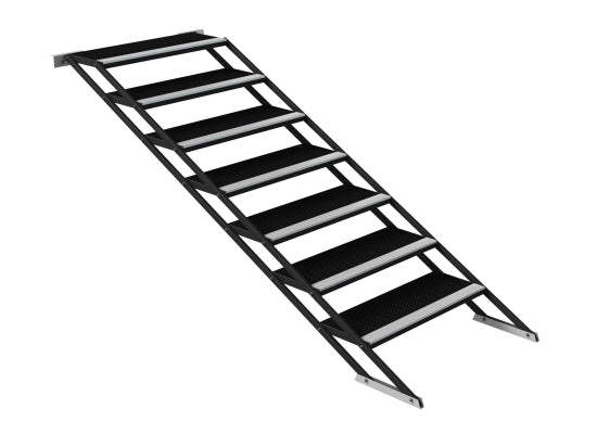 Global Truss GT Stage Deck Bühnentreppe variabel Mit den anpassbaren Treppen können flexible Podesthöhen von 100 bis 180 cm realisiert werden. Es gibt vier verschiedene Versionen, die sich in sich in der Höhe anpassen lassen. An beiden Seiten können Handläufe montiert werden. Die Treppe ist leicht zu montieren und lässt sich für den Transport flach zusammenlegen. Darüber hinaus ist die variable Treppe wetterfest und somit für den Außenbereich geeignet. Technische Daten Made in Europe Material: Stahl anpassbare Stufen für gleichmäßige Verteilung einfache Befestigung am Stage Deck