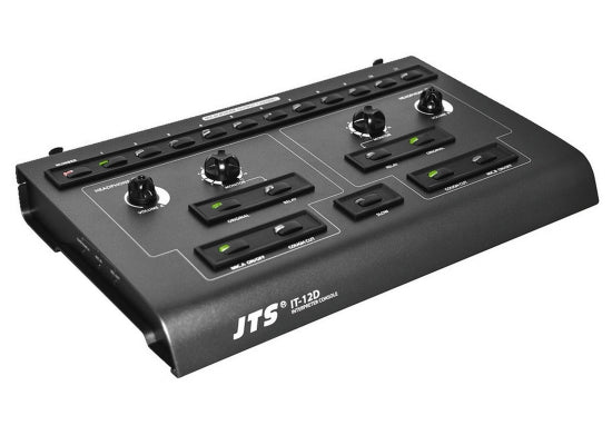 JTS IT-12D Dolmetscher-Konsole Features Bis zu 11 Dolmetscher-Konsolen kaskadierbar 2 Kanäle, ein Kanal aktiv, der andere dient als Standby-Kanal Übersetzungskanäle können an der Konsole dauerhaft gespeichert werden Der zuletzt aktive Kanal bleibt nach dem Abschalten der Betriebsspannung erhalten und steht nach dem Einschalten sofort wieder zur Verfügung 2 Simultan-Dolmetscher oder -Kommentatoren können gleichzeitig über den aktiven Kanal arbeiten Headset-Anschluss mit Lautstärkeregelung Mikrofone abschalt- und mutebar, Räuspertaste Symmetrische XLR-Buchsen zum Erweitern mit mehreren Mikrofonen Relais-Übersetzungen über 11-stufigen Sprach-Wahlschalter Umschaltung zwischen Relais- und Saalsprache über geräuscharme Taster Protokollierung der Übersetzung über 2 Record-Ausgänge Slow-Down-Taste Technische Daten Material: Robustes, standsicheres Metallgehäuse Stromversorgung über Basisgerät Maße: 330x206x56mm Gewicht: 2,3 kg