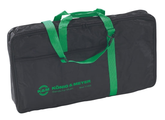 K&M 11450 Tragetasche Für K&M 11899 Notenpult und K&M Orchesternotenpulte 118/1 etc. Reißfestes Nylongewebe mit Leinencharakter, wasserabweisend. Mit umlaufendem Reißverschluss, Trageschlaufen und abnehmbarem Umhängeriemen. 2 Innenfächer und zusätzliche Vortasche mit Reißverschluss. Schwarz mit grünem K&M-Signet. Technische Daten Größe: 695 x 120 x 400 mm Gewicht: 0,9 kg