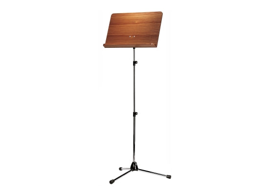 K&M 118/4 Orchesternotenpult Technische Daten Ausführung: Stativ verchromt, Holzplatte Nussbaum Besonderheit: extra lang Fußkonstruktion: Sockel mit Klappfüßen Höhe: von 740-1635mm Material: Stativ Stahl, Platte Holz Notenauflage: 550x355mm Rohrkombination: 2-fach ausziehbar Verbindung Stativ/Platte: Prismenverbindung Gewicht: 4,5kg