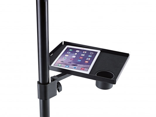 K&M 12227 Ablageplatte für Mixer / Controller Praktische Ablageplatte, die an allen Stativen mit einem Rohrdurchmesser von 25 bis 42 mm befestigt werden kann. Die nutzbare Ablagefläche beträgt 250 x 330 mm und eignet sich hervorragend für kleinere elektronische Geräte wie Mixer, Controller oder Tablets. Eine zusätzliche Aussparung in der Platte sorgt für eine komfortable Kabelführung. Ein weiteres nützliches Feature ist der Dosen- bzw. Becherhalter. Die robuste Stahlkonstruktion eignet sich dazu hervorragend für Percussion- und anderes Musikzubehör. Eine Schaumstoff-Einlage dämpft Vibrationen und verhindert unangenehme Nebengeräusche. Der Abstand zum Stativ, sowie die Ausrichtung der Platte sind zusätzlich individuell verstellbar. Features Inklusive Dosen- bzw. Becherhalter Mit Aussparung für eine komfortable Kabelführung Inklusive einer Schaumstoff-Einlage Technische Daten Material: Stahl Anschraubbar bis: Rohr-ø 42 mm Ausführung: schwarz Maße: 250x330mm Gewicht: 1,91kg