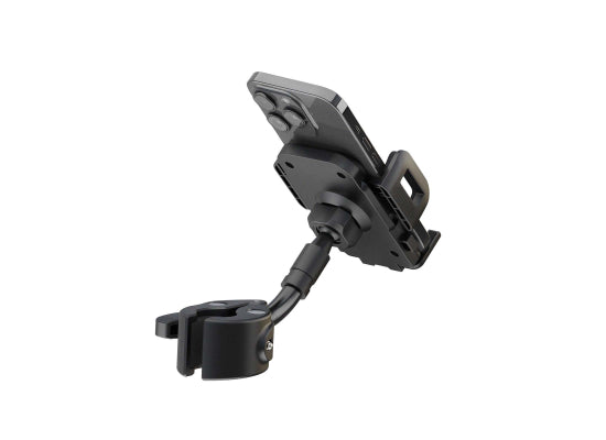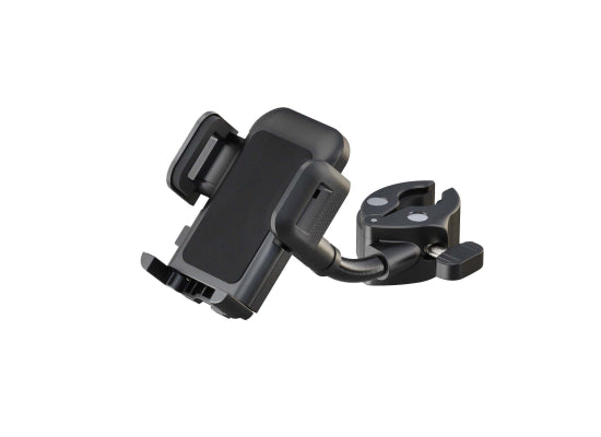K&M 19761 Smartphone-Halter Mit diesem universellen Halter ist Ihr Smartphone immer in Reichweite. Der Halter ist geeignet für alle flachen Geräte mit einer Breite von 45 bis 90 mm. Die Bedienung ist einfach und schnell. Smartphone einlegen - Klemmbacken zusammen drücken - fertig. Auf Knopfdruck wird das Gerät wieder freigegeben. Die Klemmbacken mit integrierter Gummiauflage garantieren einen sicheren Halt. Die beweglichen Auflagen können, wenn nötig, auch komplett eingeklappt werden. Dank des Kugelgelenks kann der Halter nach oben und unten geneigt und um 360° gedreht werden. Der flexible Haltearm sorgt für zusätzliche individuelle Positionierung. Ein stabiles Klemmelement mit bedienerfreundlicher Flügelschraube ermöglicht die schnelle Montage an jedem Rohr von 10 bis 30 mm Durchmesser. Features besonders geeignet für Smartphones, flache Geräte und MP3 Player Bedienungselemente werden in der Funktion nicht beeinträchtigt drehbar um 360° Flexibler Haltearm für individuelle Ausrichtung Technische Daten anschraubbar bis: 30 mm Ausführung: schwarz Breite: von 45 bis 90 mm Gewicht: 0,21 kg Material: Kunststoff