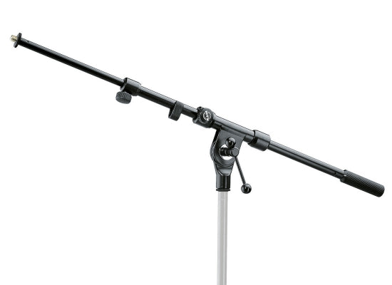 K&M 211/1B Schwenkarm, schwarz Features klassische ausziehbare Rohrkombination mit 3/8" Anschlussgewinde, Konterscheibe und Griff geräuschlos verstell- und neigbar sichere Klemmung durch beweglichen Knebel kein Verkratzen der Rohroberfläche durch Kunststoffhülsen im Stahlteil Technische Daten Farbe: schwarz Stativanschlußgewinde: 3/8" Schwenkarmlänge: 470-770mm Gewicht: 0,8kg