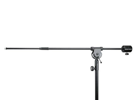 K&M 21232 Schwenkarm Ausziehbarer Schwenkarm mit 3/8" bzw. 5/8" Mikrofongewindeanschluss. Die stabile Rohrkombination mit den Durchmessern 20 und 15 mm erreicht eine nutzbare Auszugslänge von 1670 mm. Ein 3 kg schweres Gegengewicht sorgt für die nötige Balance. Dank dem ø 35 mm Stativadapter ist der Schwenkarm mit üblichen Boxen- und Leuchtenstativen kombinierbar. Technische Daten Ausführung: schwarz Besonderheit: mittels Stativadapter ø 35 mm mit Boxen- und Leuchtenstativen kombinierbar; inklusive schwerem, verstellbarem Ausgleichsgewicht Gewindeanschluss: 3/8" und 5/8" Klemmung: Knebel Material: Stahl Schwenkarm: ausziehbar Schwenkarmlänge: von 1.070 bis 1.870 mm Gewicht: 5,8kg