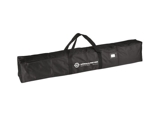 K&M 21319 Tragetasche Stabile Tragetasche für zwei große Boxenstative XL (21472). Separate Innentaschen schützen die einzelnen Stative vor Beschädigungen. Das verwendete Nylongewebe ist reißfest und wasserabweisend. Die robuste Tasche hat einen gepolsterten Tragegriff und verstärkte Seitenwände. Features Für Aufbewahrung und Transport von zwei Boxen- oder Leuchtenstativen Trennlappen in der Mitte Technische Daten Griff- bzw. Trageart: Tragegriff Maße: 1.350 mm Material: Nylon Verschluss: Reißverschluss Gewicht: 1,2kg