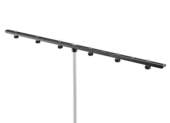 K&M 23560 Ergänzungsschiene für 6 Mikrofone, schwarz Extra lange Mikrofonschiene (850 mm) für verschiedene Aufnahmetechniken. Stabile schwingungsfreie Ausführung. 6 Langlöcher inklusive Rändelschrauben für stufenlose Einstellungen. Technische Daten Anzahl der Rändelschrauben: 6 Stück Ausführung: schwarz Besonderheit: unverlierbare Rändelschrauben; aufschraubbar auf Stative mit 3/8" Gewindeanschluss Gewindeanschluss: 3/8" Länge: 850 mm Material: Stahl Gewicht: 0,73 kg
