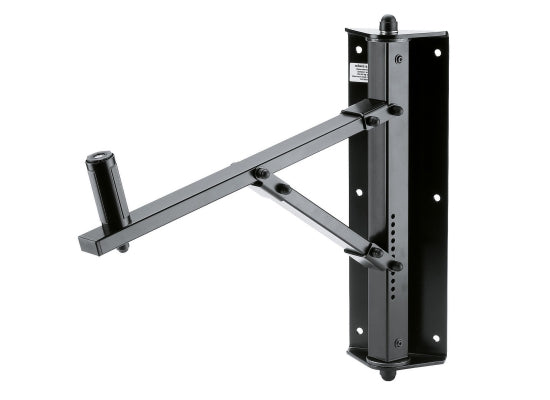 K&M 24120 Lautsprecherhalter Mit dieser schwenk- und neigbaren Wandhalterung erreichen Sie garantiert die richtige Ausrichtung Ihrer Lautsprecherbox. Die K&M 24120 Lautsprecherhalterung kann über 11 Stufen bis auf 22° geneigt werden. Der Schwenkbereich ist stufenlos einstellbar. Der patentierte Spreizdorn für Lautsprecher mit Buchseninnen- and Oslash; von 35 bis 37 mm, wird mit einem Schlüssel angezogen, und sorgt somit für einen wackelfreien und resonanzarmen Sitz der Box. Technische Daten Aufsteckbolzen: Spreiz-Aufnahmebolzen ø 35 bis 37 mm x 85 mm Aufsteckbolzen-Abstand: 420 mm Ausführung: schwarz Befestigung: Wandmontage Besonderheit: sehr flexibel patentierter Spreiz-Aufnahmebolzen feste Klemmung der Box in jeder Position resonanzoptimierte Konstruktion Gewicht: 6,2 kg Höhe: 498 mm Material: Stahl max. Belastbarkeit: 50 kg Neigung: 0° bis 22° Schwenkbereich: 180 Verstellung: stufenweise in 11 Schritten Wandplatte: 580 x 140 mm