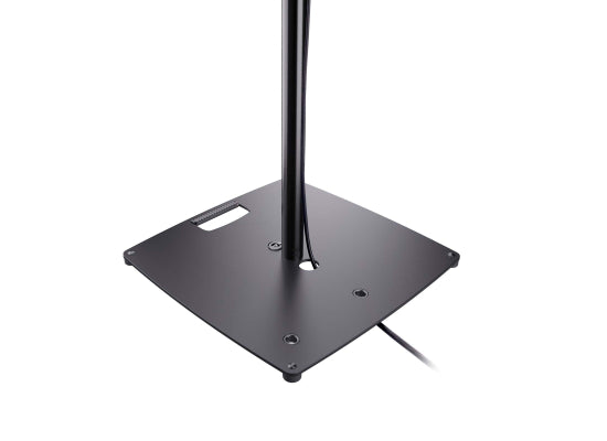 K&M 24653 Leuchten-/Boxenstativ mit Stahlplatte Attraktives Stativ für Leuchten und kleinere Lautsprecherboxen. Dank der schweren, flachen Stahlplatte ist das Stativ bestens für den Einsatz bei geringem Platzbedarf geeignet. Je nach Bedarf gibt es drei Möglichkeiten die Standsäule zu positionieren. Neben der zentrischen und außermittigen Position bietet sich die Möglichkeit die Rohrkombination auch in der Ecke zu befestigen. Ein praktischer Tragegriff, eine Kabeldurchführung sowie vier stabile Füße sind weitere nützliche Features. Die Höhe wird mit einem Sicherungshaken fixiert und per Klemmschraube geräuscharm und spielfrei gesichert. Das schlanke Design der Spannschelle ermöglicht einen platzsparenden Transport und sorgt für ein dezentes Erscheinungsbild. Die nutzbare Höhe liegt zwischen 1.400 und 2.400 mm und wird in 5 Stufen zu 200 mm erreicht. Die integrierte Gewindebuchse M10 ermöglicht das Anbringen einer Traverse oder die direkte Befestigung von Leuchten. Die max. Belastbarkeit bei zentrischer Belastung in der mittleren Position beträgt 20 kg. Technische Daten Aufstellmaß: 489 x 489 mm Ausführung: schwarz Besonderheit: integrierter Stoßdämpfer; stufenweise Höhenverstellung; je nach Bedarf gibt es drei Möglichkeiten die Standsäule zu positionieren Fußkonstruktion: flache Stahlplatte Höhe: von 1.400 bis 2.400 mm Höhenverstellung: Klemmschraube und Sicherungshaken Material: Stahl Produktkategorie: Topline Rohrende(n): ø 30 mm, integrierte Gewindebuchse M10 für Traversen Rohrkombination: 1-fach ausziehbar Tragfähigkeit: 20kg Gewicht: 14,4kg