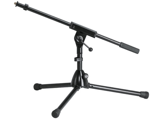 K&M 259/1B Mikrofonstativ Extrem niedrige Ausführung für Bass-Drum oder spezielle Aufnahmetechniken. Das K&M 259/1B Mikrofonstativ wird komplett mit Schwenkarm geliefert. Features Zinkdruckgusssockel extrem niedrige Ausführung Sockel mit Klappfüßen Material: Stahl Schwenkarm: einteilig Schwenkarm-Klemmung: Knebel Technische Daten Gewindeanschluss: 3/8" Schwenkarmlänge: 525mm Höhe: 280mm Gewicht: 1,9kg