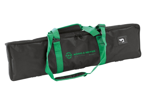K&M 26019 Tragetasche Stabile Tragetasche für 3 Stück Mikrofonstative mit Rundsockel. Reißfestes Nylongewebe, wasserabweisend. Die Tasche hat gepolsterte Tragegriffe und einen verstellbaren Umhängegurt. Auflagefüße aus Kunststoff schützen den Taschenboden. 3 Innentaschen für Sockel und fixierte Klettbänder sorgen für Optimalen Schutz der Stative. Features Besonderheit: 3 Innentaschen für Sockel und fixierte Klettbänder sorgen für optimalen Schutz der Stative Griff- bzw. Trageart: Tragegriff und Umhängegurt Technische Daten Material: Nylon Verschluss: Reißverschlus Maße: 1.050 x 250 x 60 mm