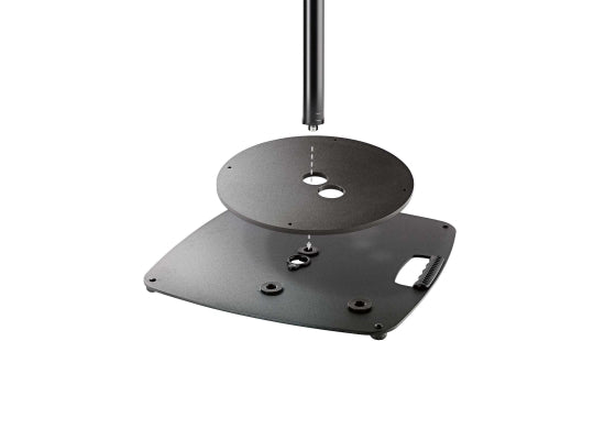 K&M 26709 Bodenplatte Zusatzgewicht Separate Gewichtsplatte zur Erhöhung der Standfestigkeit, für Boxenstative mit M20 Sockelplatte. Die Platte hat einen Durchmesser von 325 mm und eine Stärke von 8 mm. Für eine mögliche Kabeldurchführung gibt es eine weitere Bohrung. Selbstklebende Gummipuffer sorgen für einen rutschfesten, geräuscharmen Einsatz. Das Gewicht beträgt 5 kg. Das Zusatzgewicht lässt sich einfach und ohne Werkzeug montieren. Es können auch mehrere Platten übereinander gestapelt werden. Features Zur Erhöhung der Standfestigkeit Inklusive Gummipuffer für einen rutschfesten, geräuscharmen Einsatz Mehrere Platten können übereinander gestapelt werden Technische Daten Ausführung: schwarz struktur Bohrungen: ø 43,5 mm (2 x) Durchmesser: 325 mm Material: Stahl Höhe: 8mm Gewicht: 4,97kg