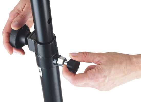 K&M 26737 Boxenstativ, Stahl, schwarz Das dekorative Boxenstativ mit integriertem, patentiertem Spreizdorn für festen und spielfreien Sitz der Lautsprecherbox. Die Spreizbacken aus Kunststoff sorgen zudem für eine resonanzarme Verbindung zwischen Box und Rohr. Die Fixierung der Box ist denkbar einfach und erfolgt über einen handlichen Spannring, der einfach auf - und zugedreht wird. Durch die schwere Gussplatte mit dem relativ kleinen Durchmesser ist das Stativ bestens für den Einsatz bei geringem Platzbedarf geeignet. Der bewährte Rastbolzen mit der Sicherungsschraube ermöglicht eine komfortable und sichere Höhenverstellung. Das Stativ hat eine max. Auszugshöhe von 1.800 mm und ist für Boxen mit einem Gewicht bis zu 20 kg geeignet. Technische Daten Aufstellmaß ø: 450 mm Ausführung: schwarz Besonderheit: patentierter Spreizdorn »Ring Lock«; resonanzarme Verbindung durch Spreizbacken aus Kunststoff Fußkonstruktion: Guss-Rundsockel Gewicht: 10 kg Höhe: von 1.125 bis 1.810 mm Höhenverstellung: Rastbolzen und Sicherungsschraube Material: Stahl max. Belastbarkeit: 20 kg Produktkategorie: Starline Rohrende(n): »Ring Lock« ø 35 bis 37 mm Rohrkombination: 1-fach ausziehbar