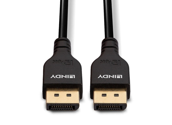 Lindy 36463 DisplayPort-Kabel, 3.0m, schwarz Die schlanken DisplayPort-Kabel von Lindy bieten eine flexible und qualitativ hochwertige DP-Verbindungslösung, die einen speziell entwickelten kompakten, flachen Stecker und eine Kabelstruktur mit kleinem Durchmesser verwendet. Mit ihrem kompakten und gleichzeitig leistungsstarken Design sind diese Kabel ideal für Situationen, in denen der Platz um die Quellgerät- und Display-Anschlüsse herum begrenzt ist, z. B. bei Gaming-Monitoren oder Grafikkarten. Die dreifach geschirmten 30AWG-Leiter aus reinem Kupfer sorgen für eine verbesserte Gesamtleistung Die goldbeschichteten Phosphorbronze-Pins bieten Schutz gegen Korrosion und Ermüdung. Hochwertige, 24-karätig vergoldete Kontakte und Stecker sorgen für optimale Signalintegrität und maximale Zuverlässigkeit der Steckverbindungen. Diese Kabel unterstützen DP-1.4-Auflösungen einschließlich 8K@60Hz und 4K@144Hz und eignen sich hervorragend für anspruchsvolle Gaming-Setups, ob zu Hause oder etwa in einer eSports-Arena, oder alternativ für kleine Digital Signage-Installationen wie Shop-in-Shops oder Verkaufsstände. Mit Längen von 0,5, 1, 2 und 3 m bieten sie auch eine vielseitige Lösung für kollaborative Huddle-Spaces oder moderne Bildungseinrichtungen in Kombination mit einem Touchpanel oder LFD (Large Format Display). Features Professionelles, Slm-Kabel für DisplayPort, mit Low-Profile-Steckern Unterstützt UHD-Auflösungen bis 8K 7680x4320@60Hz 4:2:2 8bit sowie 4K 4096x2160@144Hz 4:2:2 10bit Robustes ABS-Gehäuse mit 24Karat vergoldeten Anschlüssen und Kontakten Dreifach geschirmtes Kabel, korrosionsbeständige verzinnte 30AWG-Kupferleiter Technische Daten Stecker: DisplayPort male / DisplayPort male Gehäusematerial: PVC Beschichtung des Steckverbinders: Gold plated Pin Konstruktion: Phosphor bronze Beschichtung des Pins: Gold Standard: DP 1.4 Farbe: Schwarz Typ: Rund Manteldurchmesser: 5.7mm Mantelmaterial: PVC Leitermaterial: Kupfer Leitermaße: 30AWG Schirmung: Verzinntes Kupfergeflecht, 85% Unterstützte Bandbreite: 32.4 Gbps Maximale Auflösung: 7680x4320@60Hz 4:2:2 Länge: 3 m