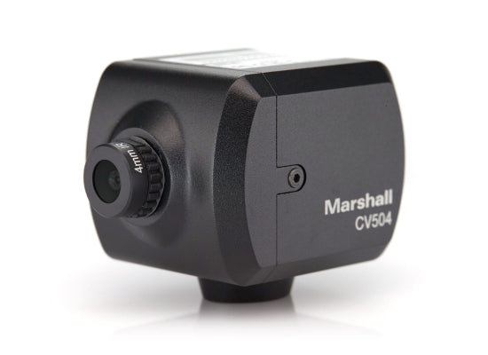 Marshall CV504 Full-HD Kamera Die CV504 ist das Nachfolgemodell der CV503. Die wesentlichen Merkmale sind identisch. Der Sensor hat jedoch größere Pixel. Features vielseitige Bildeinstellungen: Red/Blue, White Balance, Gain Control, Pedestal (Blacks), Shutter, White Clip, Exposure, Gamma, Resolution, Frame Rates Tag/Nacht Modus (automatisch und manuell wählbar) Anpassung über On Screen Menü: durch Joystick am Kabel Anpassung im Live Betrieb: mit externem Steuerpult über RS-485 (VISCA) kompaktes & robustes Gehäuse 1/4" Innengewinde auf der Unterseite Technische Daten Sensor & Objektiv 2.5 Megapixel (1/2.8" / 2.9μm / 4:2:2 color) 4.0mm Objektiv im Lieferumfang enthalten (85° horizontal AOV) M12 Objektiv wechselbar (erhältlich in verschiedenen Brennweiten) Auflösung und Bildraten 1920 x 1080p, 1920 x 1080i (60 / 59.94 / 50 / 30 / 29.97 / 25 / 24 / 23.98 fps) 1280 x 720p (60 / 59.94 / 50 / 30 / 29.97 / 25 / 24 / 23.98 fps) Anschlüsse 3G-SDI RS-485 (mit Klemmverbindung für 2-polige Verkabelung) USB Port für Firmware-Updates 3.5mm Stereo Audio Input 12V DC Leistungsaufnahme 6W (12V DC / 500mA) Maße & Gewicht Maße (BxTxH): 44x56x47mm Gewicht: 0,11kg Lieferumfang Kamera 4.0mm Objektiv Breakout-Kabel Netzteil