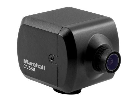Marshall CV566 Full-HD Kamera Mit der CV566 kannst du Videos über 3G-SDI und HDMI ausgeben. Der Genlock macht es möglich, mehrere Kameras frame-genau miteinander zu synchronisieren. Das mitgelieferte 3.6mm Objektiv kann bei Bedarf gewechselt werden. Features Genlock (Tri-Level Syc) vielseitige Bildeinstellugen: Red/Blue, White Balance, Gain Control, Pedestal (Blacks), Shutter, White Clip, Exposure, Gamma, Resolution, Frame Rates Tag/Nacht Modus (integrierter IR-Filter automatisch und manuell aktivierbar) Anpassung über On Screen Menü: durch Joystick am Kabel Anpassung im Live Betrieb: mit externem Steuerpult über RS-485 (VISCA) kompaktes & robustes Gehäuse 1/4" Innengewinde auf der Unterseite Technische Daten Sensor: 2.2 Megapixel Sony (1/2.8") Full HD Min. Illumination: 0.01 Lux (im Nachtmodus IR-Wellenlängen bis bis 0.005 Lux) Objektiv: 3.6mm (72° horizontal AOV), wechselbar Objektivmontage: M12 Auflösungen und Bildraten: 1920x1080p, 1920x1080i (60 / 59.94 / 50 / 30 / 29.97 / 25 / 24 / 23.98 fps) / 1280x720p (60 / 59.94 / 50 fps) Anschlüsse: 3G-SDI / HDMI / RS-485 (mit Klemmverbindung für 2-polige Verkabelung) / USB Port für Firmware-Updates / 3.5mm Stereo Audio Input Stromversorgung: 6W (12V DC / 500mA) Maße (BxTxH): 44 x 56 x 47 mm Gewicht: 0,12 kg Lieferumfang Kamera 3.6mm Objektiv Breakout-Kabel (gebündelt: Genlock, RS485 Port, Stereo-Audio, 12V-Power) Netzteil