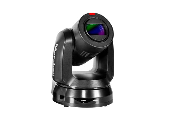 Marshall CV730-BK 4K PTZ Kamera Der Marshall CV730 verfügt über einen 30-fachen optischen Zoom-Block, der 12GSDI/HDMI/IP-Ausgänge gleichzeitig mit kristallklaren UHD-Bildern bis zu 3840x2160p bei 60fps ermöglicht. Zu den fernbedienbaren Einstellungen gehören Blende, Zoom, Schwenken/Neigen, Weißabgleich, Belichtung, Sockel und automatische Einstellungen, die Umgebungsschwankungen verfolgen. Die PTZ-Kameras CV730-BK sind jetzt zertifiziert für Barco-Clickshare. Mit Clickshare kann man den Bildschirm des eigenen Notebooks drahtlos mit einem anderen Monitor teilen. Das Konzept wurde für Gruppen entwickelt, die zusammen in einem Raum sitzen, gemeinsam auf einen großen Bildschirm an der Wand blicken und sich abwechselnd ihren eigenen Bildschirm zeigen möchten. Die Nutzung funktioniert per Plug & Play. Treiber sind nicht nötig. Der Dongle kann flexibel zwischen den Teilnehmern weitergereicht werden. Alternativ zum Dongle ist das Teilen auch über die Clickshare App möglich. So können auch Smartphones genutzt werden. Das System ist kompatibel mit Windows, iOS und Android. Features Zertifiziert für Barco-Clickshare 8,5-Megapixel-UHD-Sensor (1/1,8") 30x optischer Zoom (6,5mm~202mm) ab 65° H.AOV 340°-Schwenk- und 120°-Neigebereich 12G/6G/3G-SDI, HDMI2.0 und IP (HEVC/H265) Ausgänge 3840x2160p, 1920x1080p und 1280x720p 59.94, 50, 29.97, 25fps 3,5 mm TRS-Stereo-Audio über E/A-Kabel (Mic/Line) 12V-Netzkabel im Lieferumfang enthalten (30W max) OBS Studio Control Plugin (Download für Plugin und Installationsanleitung im Reiter "Downloads") ermöglicht Steuerung über die Oberfläche von OBS Technische Daten Auflösung und Bildraten UHD progressive 3840 x 2160p (59,97 / 50 / 25 / 29,97 fps) HD progressive 1920 x 1080p (59,94 / 50 / 25 / 29,97 fps) SD progressive 1280 x 720p (59,97 / 50 / 29,97 / 25 fps) Ausgänge IP (HEVC/H265) 12G / 6G / 3G-SDI HDMI 2.0 Audio 3.5mm TRS Stereo Sonstiges Resolution: 4K / UHD, Full HD Video Output: Ethernet, HDMI, SDI Zoom: 30x Extras: PoE, RS422 / RS232 Control Interface Sesor: 8.5 Megapixel (1/1.8") UHD Objektiv: 30-fach optischer Zoom (6.5~202mm) Lieferumfang Kamera Netzteil Kabel