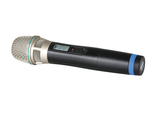 Mipro ACT-32H-59 8AD Handsender Features Solides Kunststoffgehäuse schützt den Sender vor Schlägen von außen und macht ihn unempfindlich gegenüber Griffgeräusche. Stabile PLL-Schaltung. Automatische Synchronisation mit der Frequenz des Empfängers durch die patentierte MIPRO ACT™-Funktion (Auto Channel Targeting). ACT-32H: Betrieb mit 2 x AA Batterien Einfaches und schnelles auswechseln der 2 AA-Batterien durch Abschrauben des Gehäuseunterteil bei ACT-32H. Wechselkopfsystem für einfaches und schnelles Umrüsten der Mikrofonköpfe auf premium Kondensator-/ oder dynamische Kapseln. Der einzigartige mehrteilige Metallgrill schützt die Kapsel vor Stößen, macht sie unempfindlich gegenüber Poppgeräusche und sorgt für klaren Sound. LCD-Display mit Anzeige von Batteriestatus, Gruppe und Kanal. Verriegelbarer An/Aus-Schalter verhindert ungewolltes Abschalten des Handsenders während der Benutzung. Unterschiedlichen Farbmarkierungen zum zuordnen von Kanälen zu den jeweiligen Anwendern bei größeren Setups. Technische Daten Modell: ACT-32H Bandbreite: 24 MHz (Mittenlücke 10 MHz) Frequenzbereich: 8AD-Band 823-832MHz Tuner Verfahren: PLL Synthesized Synchronisierung: ACT Sync (Automatic Channel Targeting) Sendeleistung: 30 mW Nennhub: < ±40kHz Nebenaussendung: < -55dBc Max. Eingangsempfindlichkeit: 140dB SPL Mikrofonkopf: dynamischer Mikrofonkopf MU-59 Batterien: 2 x AA Alkaline Betriebsdauer: Bis zu 12 Stunden Display: LCD (Liquid-Crystal-Display) Gehäuse: Kunststoffgehäuse Maße (Ø × L): 50 × 233 mm Gewicht: ca. 0,246 kg, ohne Batterien