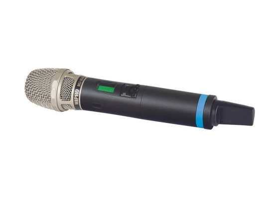 Mipro ACT-700H80 5UB Handsender Die innovativen drahtlosen Mikrofon-Systeme der ACT-700 Breitband-Serie sind Ergebnis jahrelanger und umfangreicher Erfahrung in Konstruktion und Fertigung von Mikrofon- und Funksystemen. Die Handsender haben ein robustes Metallgehäuse und sind mit AA-Batterien oder Li-Ionen Akku erhältlich. Für die Systeme mit Akku-Technik sind verschiedene Ladegeräte erhältlich. Eine Ladestandsanzeige am Sender informiert über den Ladezustand der Batterien, bzw. des Akkus. Die ACT-700 Serie kombiniert professionelle Eigenschaften, benutzerfreundliche Bedienung und ausgezeichnete Qualität bei einem sehr guten Preis- Leistungsverhältnis. Features Handsender mit Kondensator MU-80 Mikrofon Solides Metallgehäuse schützt den Sender vor Schlägen von außen und macht ihn unempfindlich gegenüber Griffgeräuschen Stabile PLL-Synthesizer Technologie Automatische Synchronisation mit der Frequenz des Empfängers durch die patentierte MIPRO ACT™-Funktion (Auto Channel Targeting) Betrieb mit 2 x AA Batterien oder mit aufladbarem Akku 18500 Betriebszeit bis zu 12 Stunden Einfaches und schnelles auswechseln der 2 AA-Batterien/Akkus durch Aufschrauben des Gehäusegriffes Die Handsender sind mit verschiedenen hochwertigen dynamischen oder Kondensator-Mikrofonköpfen erhältlich Das Wechselkopfsystem ermöglicht einfaches und schnelles Umrüsten der Mikrofonköpfe Der einzigartige mehrteilige Metallgrill der Mikrofonköpfe schützt die Kapsel vor Stößen, macht sie unempfindlich gegenüber Popgeräuschen und sorgt für klaren Klang Verriegelbarer An/Aus-Schalter verhindert ungewolltes Abschalten des Handsenders während der Benutzung LCD-Display mit Anzeige von Batteriestatus, Gruppe und Kanal Mute-Funktion des Handsenders voreinstellbar Sendeleistung einstellbar auf high (50 mW oder low (10 mW) Integrierte Hochleistungsantenne, Ein/Aus-Knopf, Mute-Taste, Setup-Tasten Die Handsender können mit unterschiedlichen Farbmarkierungen gekennzeichnet werden Technische Daten Schaltbandbreite: 72 MHz Frequenzbereich 5UB: 554 - 626 MHz Sendeleistung: 10 mW / 50 mW Nennhub: < ±40 kHz Nebenaussendung: <-55 dBc Max. SPL: 142 dB Reichweite: > 100 m Spannungsversorgung: 2 x AA Batterien oder 1 x 18500 Li-Akku Betriebsdauer: > 12 h Gehäuse: Metall (Magnesiumlegierung) Maße (ØxL): 50x262mm Gewicht: 0,260 kg