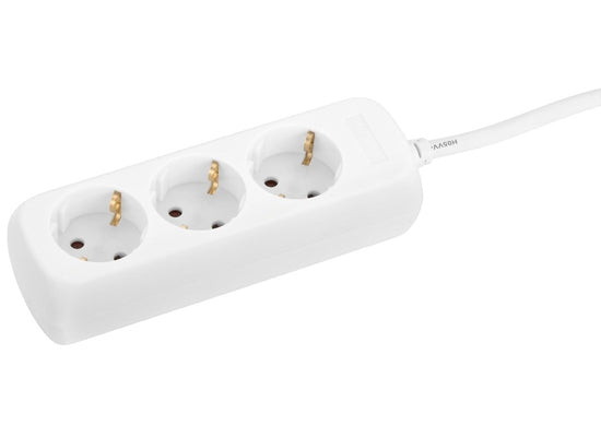 Monacor MC-30/WS Schukoleiste, weiß Features Tisch-Steckdosenleiste mit 3 Schukosteckdosen Weiß Steckdosen um 45° gedreht Kabelspezifikation H05VV-F3Gx1,5mm² 1,5m-Anschlusskabel mit Schukostecker Gewicht: 0,321 kg