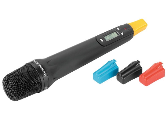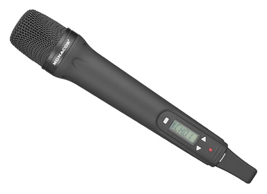 Monacor TXA-800HT Handsender Handmikrofon mit integriertem Multi-Frequenz-Sender mit UHF-PLL-Technik. Passend zu den transportablen Verstärkersystemen der TXA-1000er und TXA-800er Serie. Features Dynamische Mikrofonkapsel, Nierencharakteristik 16 einstellbare UHF-Frequenzen (863,1-864,9 MHz) Empfindlichkeit 2-stufig einstellbar Mute-Funktion Hintergrund beleuchtete LCD-Anzeige für Kanal/Frequenz und Batteriezustand Sendeleistung 10 mW (EIRP) Stromversorgung über 2x1,5-V-Mignonbatterie (nicht mitgeliefert) Lieferung inklusive 4 aufsteckbaren Farbkennungen Technische Daten Trägerfrequenz: 863,1-864,9 MHz Audio-Frequenzbereich: 70-16000 Hz Frequenzstabilität: ±0,005 % Maße: Ø 46 mm x 265 mm Gewicht: 250 g