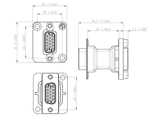 Neutrik NADB15FF-B VGA Durchgangsbuchse, schwarz Features 15-polige D-SUB Durchgangs-Einbaubuchse female auf female Nickel D-Gehäuse Ideal für Audio Netzwerke und die Integration von Equipment in Videoanlagen Standardisiertes D-Gehäuse Technische Daten Bezeichnung: NADB15FF Geschlecht: female - female Durchgangswiderstand: 10 mΩ (inner) Durchschlagsfestigkeit: 1 kVdc Isolationswiderstand: ≥ 5 GΩ Anzahl elektrischer Kontakte: 15 Nennstrom pro Kontakt: 5A Nennspannung: 125V AC Anschlussart: Feedthrough Gehäuseform: D Kontaktbeschichtung: Au Kontakte: Brass (CuZn39Pb3) Einsatz: Steel, tin plated, PBT Gehäuse: Zinc diecast (ZnAl4Cu1) Gehäusebeschichtung: Nickel Entflammbarkeit: UL 94 V-0 Temperaturbereich: -25°C to +85 °C Maße (LxBxT): 26x31x37.8mm Gewicht: 0,021kg