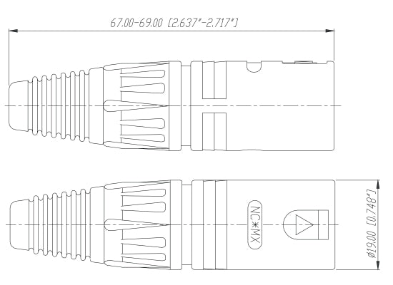 Neutrik NC5MX XLR 5pol Stecker, male Technische Daten Material: ZnAl4Cu1 Max. Stromstärke: 7,5 A Max. Spannung: 1500 V Ausführung: 5-pol, männlich, gerade Temperaturbereich: -30° bis +80° C Länge: 69 mm Durchmesser: 19 mm