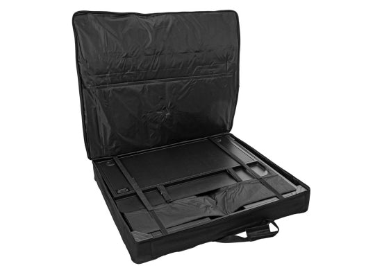 Omnitronic BOOZ Event Stand Omnitronic bietet dir mit diesem tragbaren Pult einen professionellen Look für deine DJ-Gigs. Der stabile Klapprahmen bietet dir eine Arbeitsfläche von 1150 x 50 cm. Die Arbeitshöhe beträgt 94 cm. Der Aufbau ist in drei einfachen Schritten erledigt. Im Lieferumfang ist eine praktische Transporttasche enthalten. Halterungen für Laptops und Lautsprecher zur Erweiterung sind als Zubehör erhältlich. Features Sehr stabiles Stahl-Rahmengestell Klappbar und leicht zu transportieren Einfach aufzubauen Perforierte Ablage für eine optimale Luftzirkulation DJ-Equipment mitsamt Kabellage kann unauffällig verdeckt werden Vorbereitete Kabeldurchführungen Der Artikel wird vormontiert ausgeliefert Für Anwendungsgebiete wie zum Beispiel: Mobile DJ´s / Alleinunterhalter Einsatzmöglichkeit: Stehend Mit Kunststoffclip für Kabelführung Technische Daten Aufbau: Einfach aufzubauen Maximale Last: Verteilt 100 kg Aufnahmesystem: 2x 60 mm x 60 mm Material: Stahl Farbe: Schwarz Ablagefläche: 115x49,5x 94 cm Transportmaß: 112x15x96 cm 2 Schulterriemen Maße (BxTxH): 540x1150x1070 mm Gewicht: 30.30 kg Lieferumfang 1 x Omnitronic BOOZ Event Stand 1 x Tasche 4 x Befestigungsclip 1 x Bedienungsanleitung