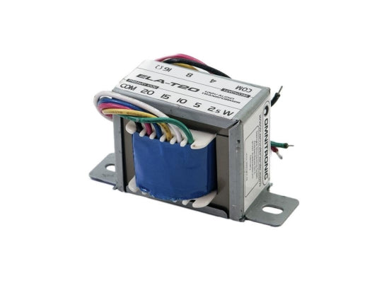 Omnitronic ELA-T20 100V Audio Transformator Features Für Verstärker oder Lautsprecher ohne eingebauten 100-V-Transformator Wandelt niederohmige Signale in 100-V-Signale 5 Leistungsanzapfungen Technische Daten Belastbarkeit nominal: 20 W RMS Frequenzbereich: 40 - 17000 Hz Impedanz: ELA Technik 100V; 4 Ohm; 8 Ohm; 16 Ohm Leistungsanzapfung: 2,5W; 5W; 10W; 15W; 20W RMS über offene Kabelenden auswählbar Maße (BxTxH): 85x54x50mm Gewicht: 0,370 kg