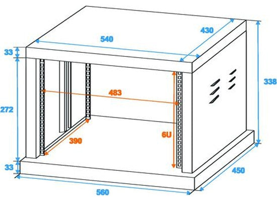 Omnitronic SR-19 Stahl Rack 6 HE Features Schwarze pulverbeschichtete Oberfläche Gestanzte Rackschienen vorne und hinten Integrierte Stützschiene in den Seitenteilen für schwere Geräte wie Endstufen Käfigmuttern, Schrauben und Plastikscheiben sind im Lieferumfang enthalten Einbautiefe 41 cm Lieferung erfolgt zerlegt Aufbauanleitung zum Download unter omnitronic.com erhältlich In verschiedenen Höheneinheiten erhältlich (1 HE = 44 mm) Technische Daten Maximalbelastung: 50 kg Außenmaße (BxTxH): 560 x 450 x 340 mm Gewicht: 10,5 kg