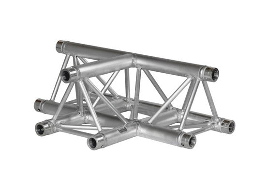 Prolyte H30D C017 T-Stück Traversen der Serie H30 bestehen aus Hauptrohren (48,3 x 3 mm) und Diagonalen (16 x 2 mm). Ausgestattet mit dem Konusverbindersystem CCS6, lässt sich die Traverse H30 schnell und bequem montieren. Traversen der Serie H30 werden unter anderem im weltweiten Verleihgeschäft eingesetzt, wo ihr die optimale Stabilität und Flexibilität zu einer großen Beliebtheit verhilft. Die Traverse der Serie H30 ist als Dreieck- und Viereckausführung lieferbar und umfasst verschiedene Eckenformen und Zubehör. Technische Daten Lieferung OHNE KONUSVERBINDER! T-Stück, 3-Weg, 0.71m, horizontal 3-Punkt-Fachwerk Außenmaß: 287 mm Anschlüsse über Koniverbinder CCS6 Schenkellänge: 710mm Gewicht: 7,43kg