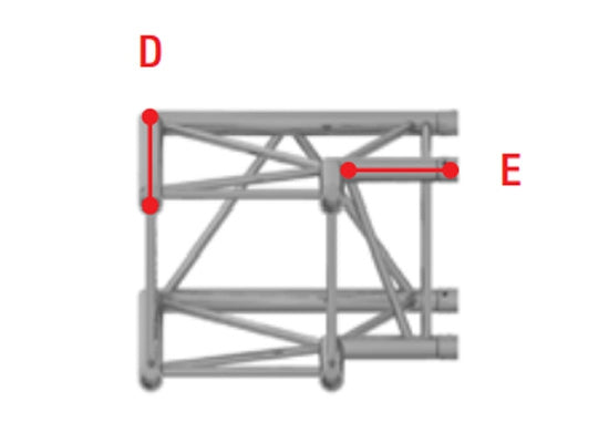 Prolyte H40V C003 Winkel Traversen der Serie H40 bestehen aus Hauptrohren (48,3 x 3 mm) und Diagonalen (20 x 2 mm). Die Traverse H40 bietet neben ihrer Flexibilität zusätzliche Stabilität und eignet sich ideal für die Veranstaltungs- und Ausstellungsbranche. Die Traverse der Serie H40 ist als Dreipunkt- und Vierpunktausführung lieferbar und umfasst verschiedene Eckenformen und Zubehör. Technische Daten Lieferung OHNE KONUSVERBINDER! Winkel, 90°, 2-Weg, 0.6m 4-Punkt-Fachwerk Außenmaß: 400 mm Anschlüsse über Koniverbinder CCS6 Schenkellänge: 600mm Gewicht: 6,6kg
